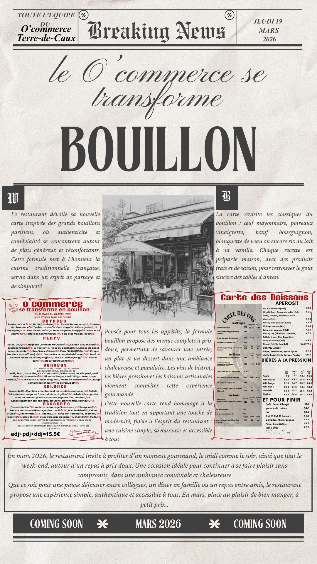 pour vos fetes de fin d'année, le o'commerce vous propose la carte des plats et menus a emporter